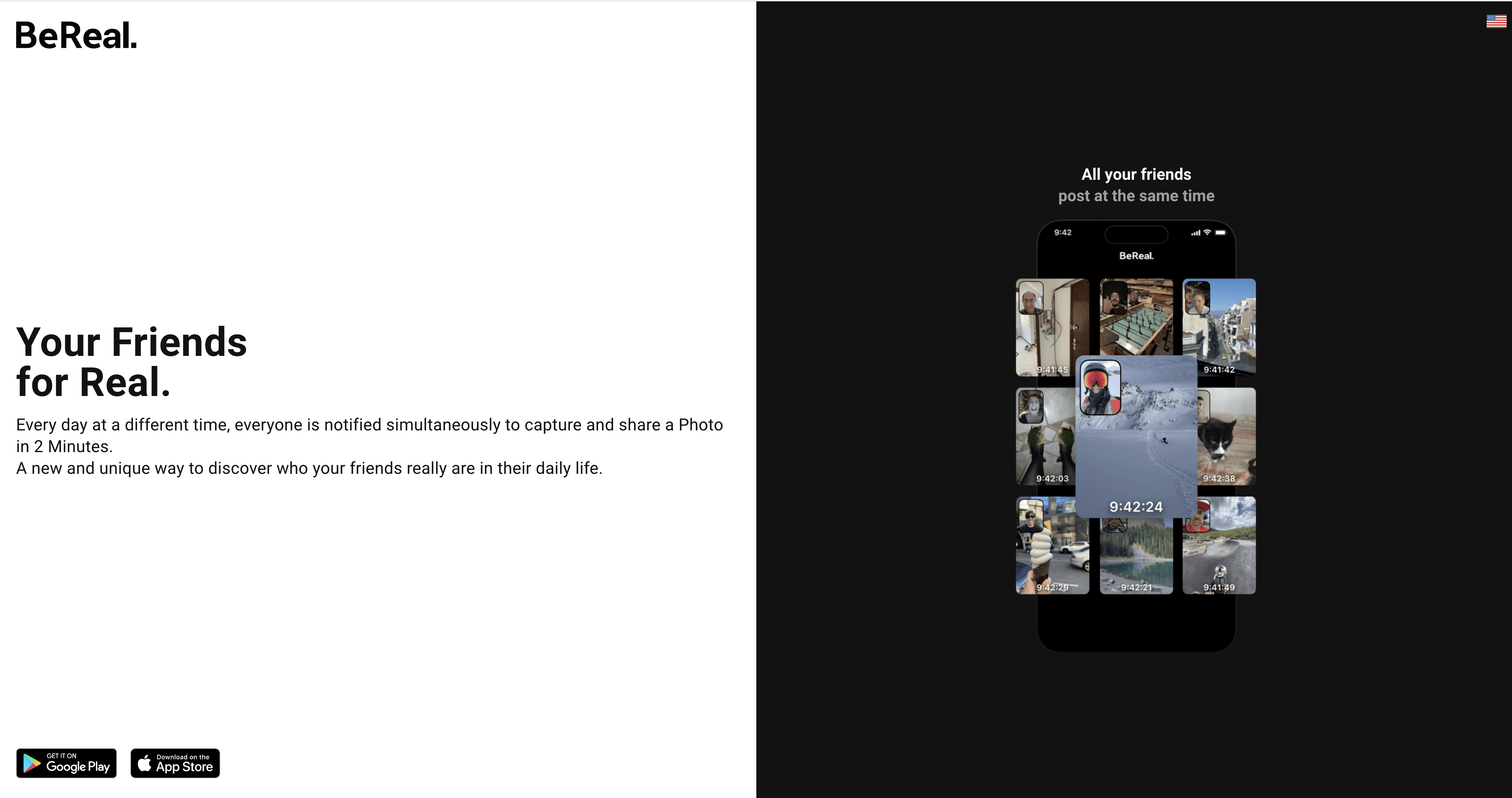 Ante todo, debemos evitar las fórmulas preestablecidas y los tópicos que ya hemos escuchado antes. Nuestro tagline debe estar escrito en clave inspiradora para conseguir destacar entre tanto ruido. Nos podemos apoyar en juegos de palabras, expresiones propias o utilizar figuras retóricas. Por ejemplo, la plataforma BeReal utiliza una expresión de slang para crear una anáfora con el nombre de la marca: