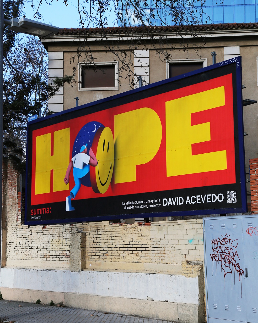 En tiempos de incertidumbre, marcados por conflictos, la inestabilidad política, la crisis de la vivienda, los problemas climáticos, la ascensión de la ultraderecha y la expansión de autoritarismos, buscamos un hilo de luz que nos ayude a seguir adelante. HOPE nace de esa necesidad: aprovechar un espacio público para ofrecer un mensaje que invite a detenerse, pensar y mirar de otra manera. La valla se convierte así en un soporte que no solo comunica, sino que también genera reflexión.